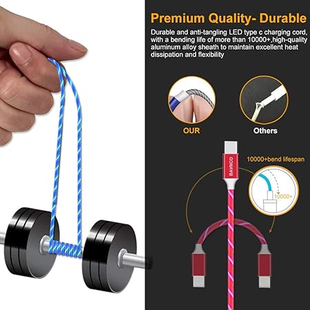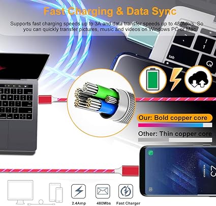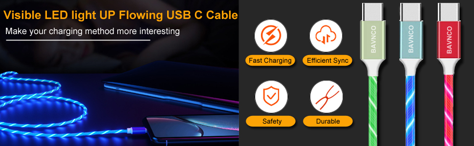 2 pack usb c charger cable bavnco 4ft visible led light up flowing 3a usb type c fast charging cord for samsung galaxy b08ksbjfyc. Cell phones accessories. 2 pack usb c charger cable bavnco 4ft visible led light up flowing 3a usb type c fast charging cord for samsung galaxy s20 s10 s9 s8 plus note 10 9 8 lg v50 v40 v30 more android phone blue green. Usb type c cable bavnco 4ft visible flowing led light up type c data cord fast charging usb c charger cable for samsung galaxy s9 s8 plus note 9 8 lg v30 v20 g6 g5 huawei htc more android phone red 3 8 out of 5 stars 332.