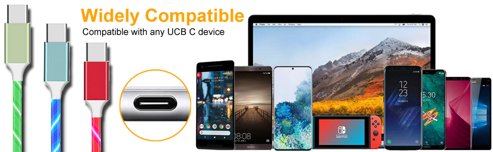 Usb c cable 6ft 3a fast charger oliomp 360 visible lighted up led flowing light cable usb type c cable charging cord compatible with samsung galaxy s10 s9 s8 note 9 pixel lg v30 v20 g6 blue 4 6 out of 5 stars 96. 2 pack usb c charger cable bavnco 4ft visible led light up flowing 3a usb type c fast charging cord for samsung galaxy s20 s10 s9 s8 plus note 10 9 8 lg v50 v40 v30 more android phone red blue 5 0 out of 5 stars 1.