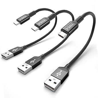 Amazon Com Short Micro Usb Cable 8 Inch Nylon Braided Fast Usb Charging Cord For For External Battery Charger Smart Phone Android Tablet And More 3 Pack Black